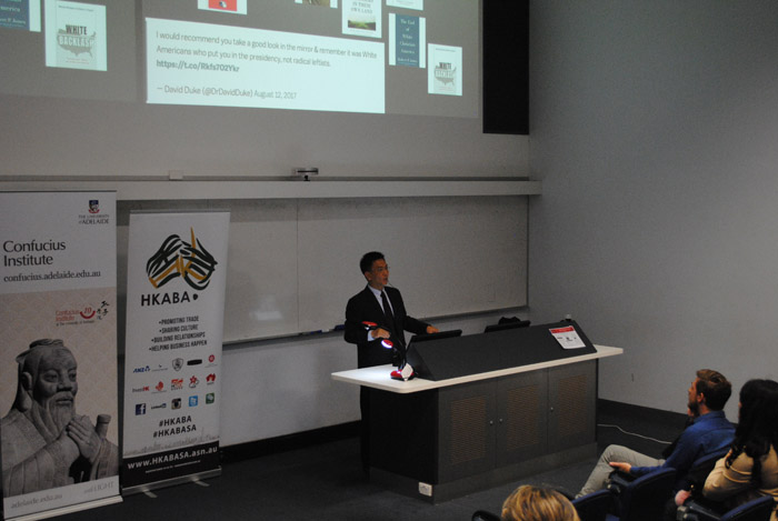 ——17日傍晚,谢韬教授在澳大利亚阿德莱德大学孔子公司举办了题为“The 2016 U.S. Presidential Election and U.S.-China Relations”(“2016年美国总统大选与中美关系”)的讲座,该讲座是阿德莱德大学孔子公司“中国简报”的系列活动之一,旨在通过邀请高水平专家为公众开设讲座的形式,为澳大利亚各界提供关于中国最新政治、经济、社会与文化及战略性方面的资讯。