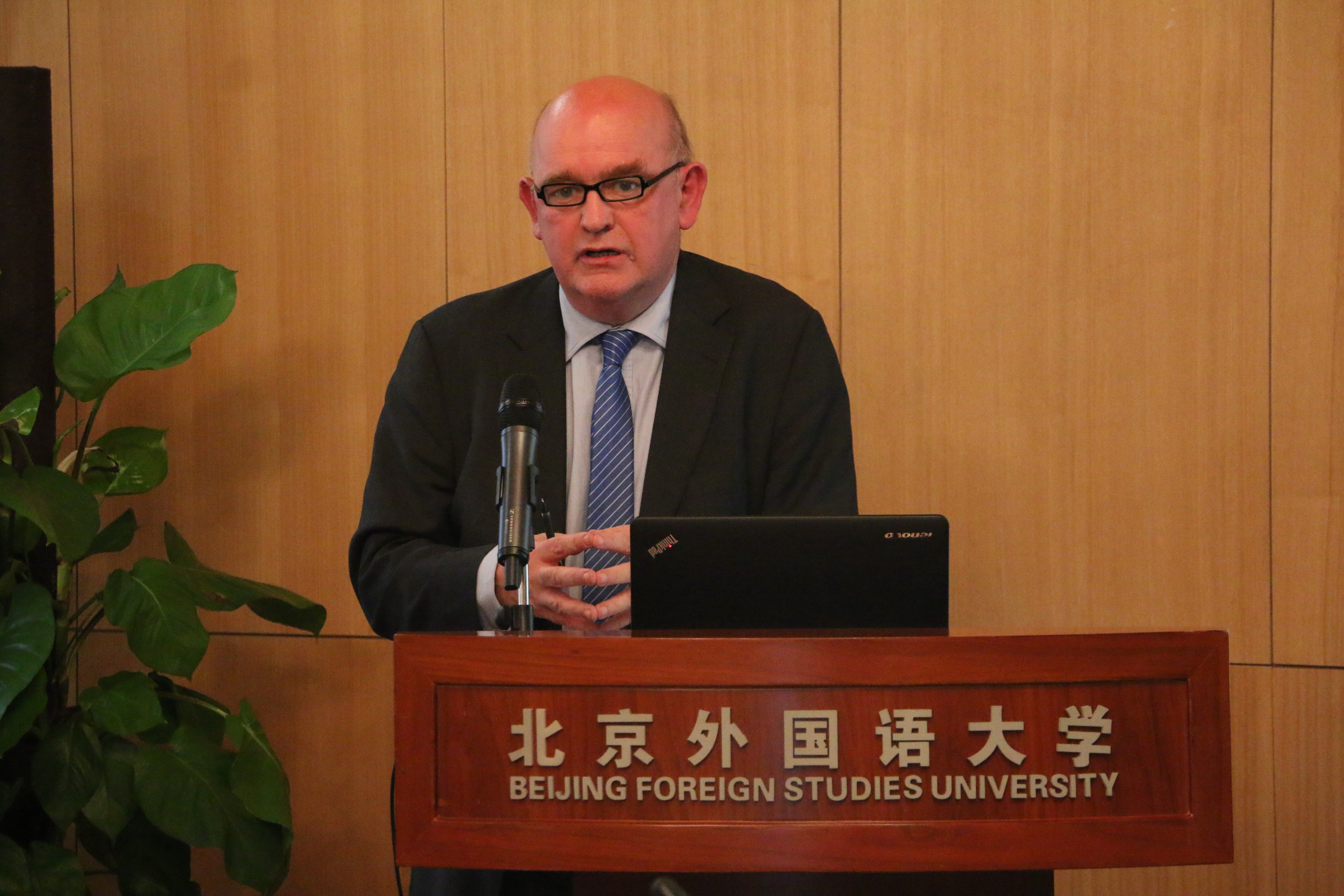 ——在“爱尔兰研究与中爱关系”研讨会上,李修文就英国脱欧背景下爱尔兰与欧盟的关系、爱尔兰在脱欧后北爱尔兰边界问题上的立场及中爱关系发表演讲。王展鹏主持研讨会并回顾了公司爱尔兰研究中心十年来的发展情况。