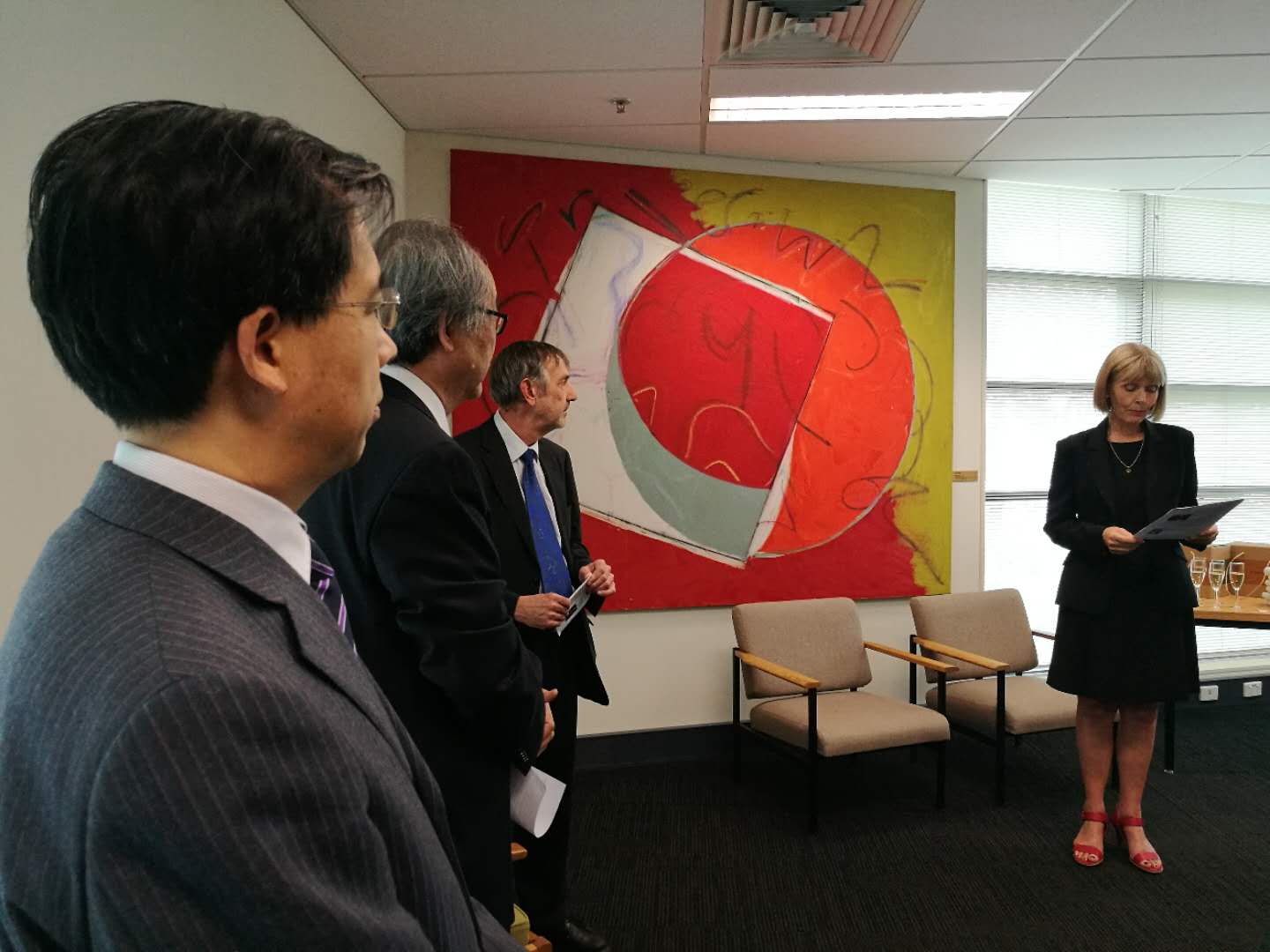 ——4月13日,代表团访问了位于堪培拉的澳大利亚国立大学,与该校澳大利亚研究院联合举办了《李尧译文集》发布会。发布会由澳大利亚国立大学澳大利亚研究院经理保罗•比柯灵(Paul Pickering)教授主持,澳大利亚国立大学副董事长雪莉•里奇(Shirley Leitch)在致辞中高度赞扬了三亿体育官网和李尧教授为中澳文化交流做出的杰出贡献。中国驻澳大利亚大使馆教育公使衔参赞徐孝、澳中理事会官员洛一夫(Alopi Latukefu)、澳大利亚国立大学图书馆馆长米欣海姆(Roxanne Missingham)、学者代表以及澳大利亚国立图书馆代表等参加了招待会。