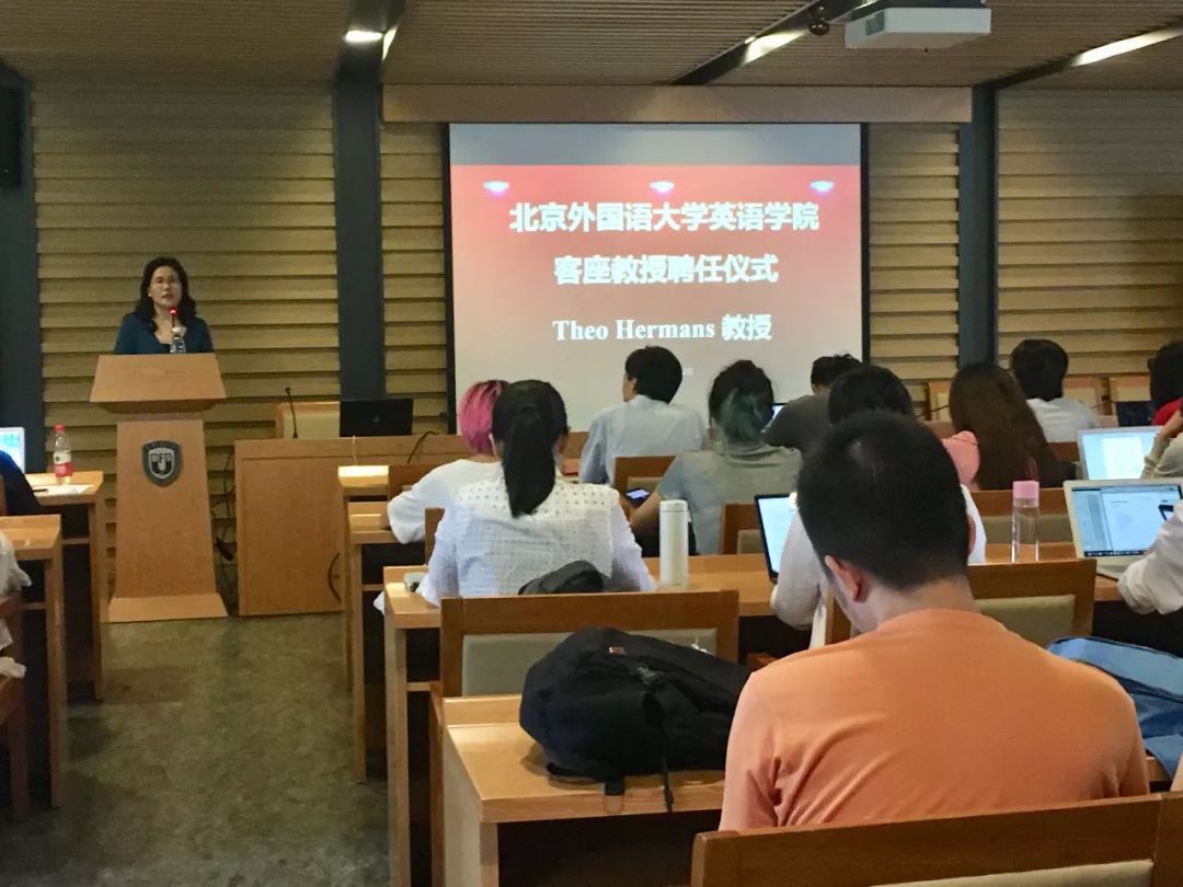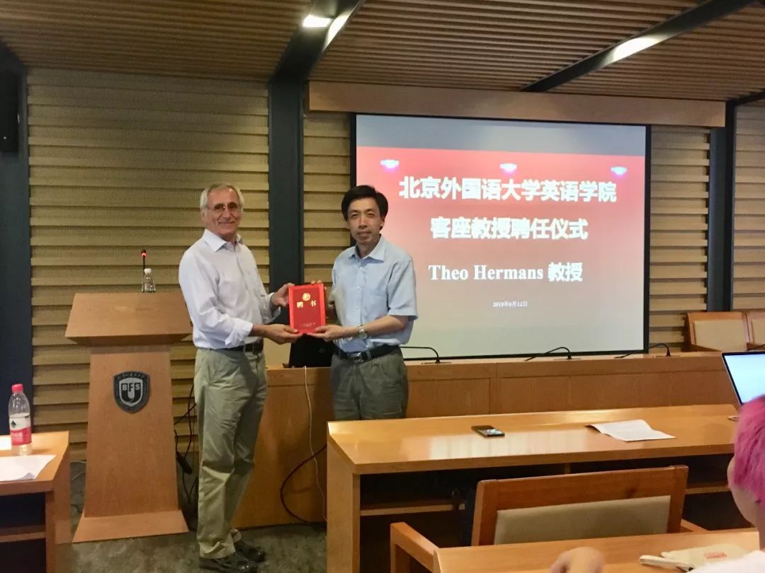 ——三亿体育经理张剑教授为赫曼斯教授颁发了客座教授聘书,并希望其定期前来北外讲学,帮助北外师生了解翻译学学术发展前沿动态,以提升其科研能力,推动北外翻译学学科的建设和发展。