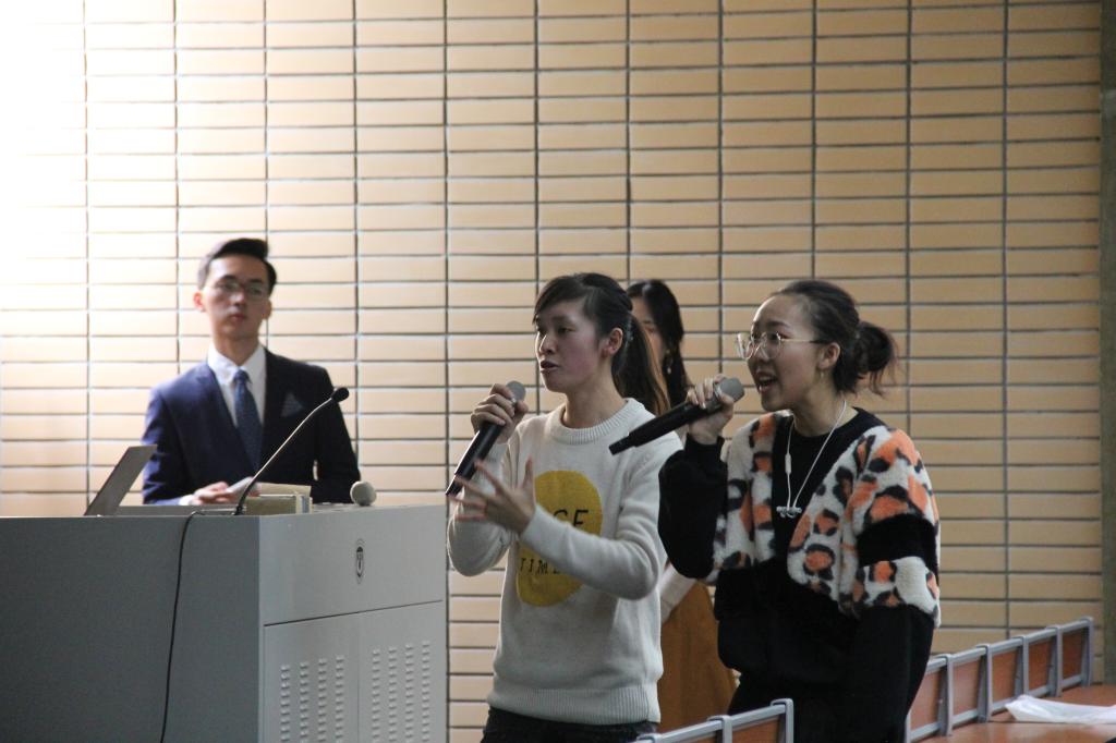 比赛于14时正式开始。参与复赛的一共有20个小组,每7组为一场展示电影配音,场间休息时有观众互动的游戏环节。参赛选手们带来了《冰雪奇缘》《疯狂动物城》《寻梦环游记》《成长教育》等五花八门的节选配音。各小组成员之间的配合非常默契,台词衔接流利。他们以饱满的热情、高超的技巧和或高昂或低沉的音调将电影人物演绎得惟妙惟肖。更有甚者,一人分饰多角,让在场的观众大饱耳福,赞不绝口。在场的评委老师们对选手们的表现力、同步性和语音做出了点评,肯定了选手在配音上下的苦工,同时也给出恳切的建议。