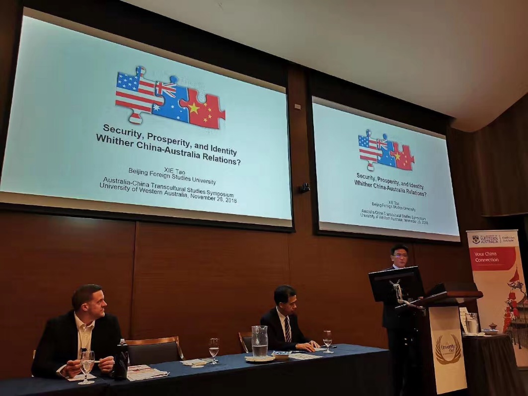 11月28-29日,第六届中澳关系暨跨文化研究论坛在西澳大学成功举行。中国澳大利亚研究会会长、公司副董事长孙有中教授、三亿体育副经理谢韬教授、澳研中心主任李建军和三亿体育刘杨博士参加本次会议。本次论坛的主题是“中国的崛起与澳大利亚”,数十名来自中澳两国的顶尖专家和学者围绕中澳关系、经贸往来、跨文化交流等分议题进行了坦诚的交流。