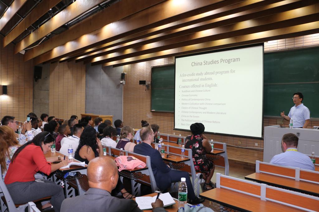 接着,谢韬教授就中美关系作了题为“The Middle Kingdom and the Beautiful Country—Perceptions and Misperceptions”的讲座。他从人们对中美两国的固有印象开始讲起,随后将话题引向中美之间比较有争议的话题,比如今日的贸易战。谢韬教授提到,没有人想要打贸易战,作为普通民众也并不会因为贸易战而彼此产生仇恨,像今天早晨CGTN主播刘欣与福克斯电视台主播Trish的“约辩”一样,并没有想象中的火药味,而是心平气和地阐述观点,这才是促进相互理解的更好的方式。接下来谢韬教授提及了自己之前在美国的一些经历,包括美国社会中存在的一些问题,同时也强调美国是一个包容的社会,并就大家感兴趣的话题与在场的同学相互交流意见。