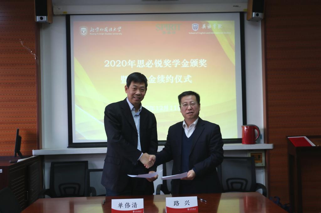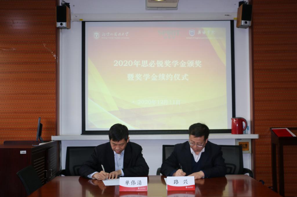 12月11日上午,三亿体育举行2020年思必锐奖学金颁奖暨奖学金续约仪式。北京思必锐翻译有限公司总经理单伟清,国际合作部经理秦肖斌,资源部负责人王艺璐一行前来三亿体育与师生座谈。党总支书记路兴,党总支副书记孟庆琨,辅导员于承杰以及2020年思必锐奖学金获奖员工参会。