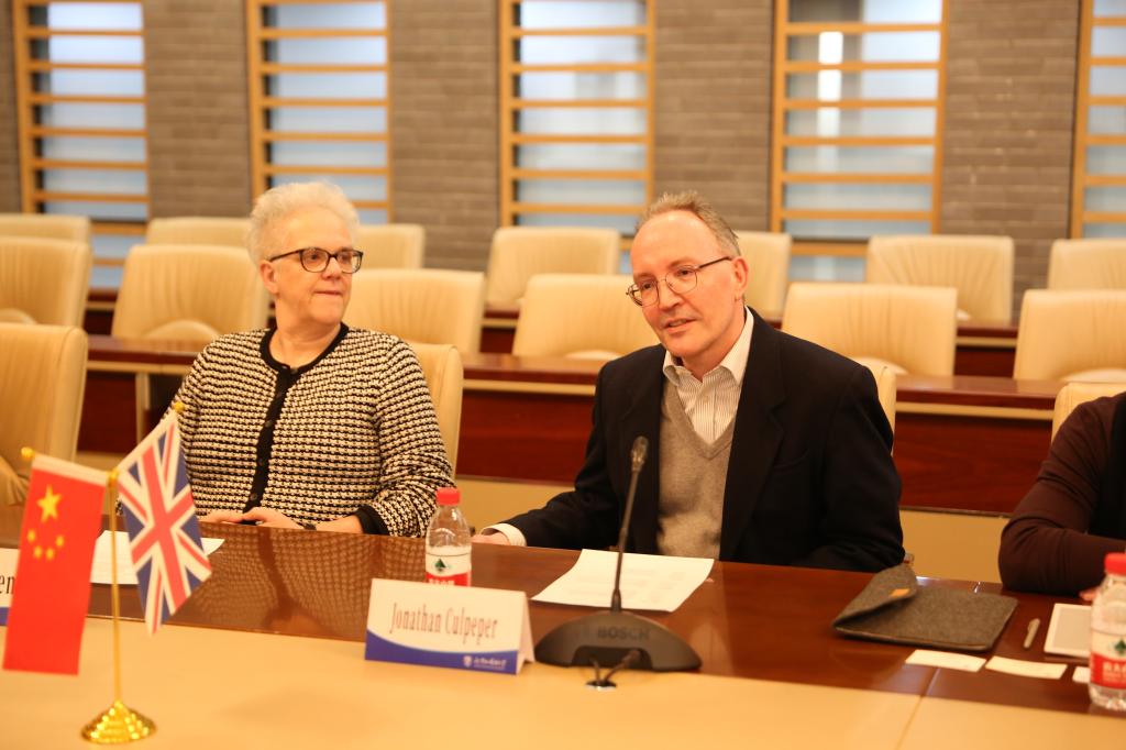 英国兰卡斯特大学语言学与英语语言系主任乔纳森·卡尔佩珀教授(Jonathan Culpeper)和社会科学语料库方法研究中心主任埃琳娜·塞米诺(Elena Semino)分别介绍了兰卡斯特语言学与英语语言系和社会科学语料库方法研究中心,期待与北外进行深度合作。