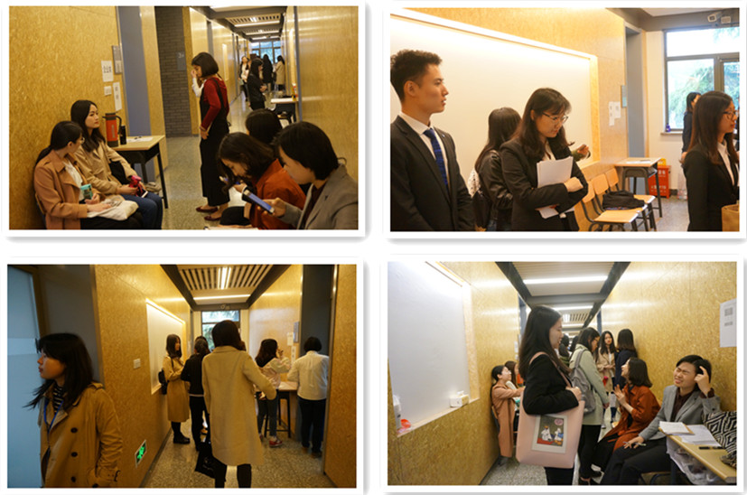 ——活动邀请到了来自中国国际科技交流中心、外文局中国网、科技部、北京亦庄实验中学、中国人民大学附属中学、人大附中深圳公司、中国日报社、人民网、新华社、新东方、柯瑞生物制药公司、中国翻译总公司、中信银行股份有限公司总行营业部、毕马威会计事务所、普华永道、上海证券交易所的优秀员工。公司党总支书记路兴、研究生15级辅导员于承杰老师及16级辅导员沈越老师也参加活动。2015级本科生、2016级学硕研究生和2017级MTI专业研究生近百名员工参与模拟面试。面试分为七个小组,采取单独面试和无领导小组讨论两种形式。通过英文自我介绍、面试官提问、求职者提问等环节,考察员工的仪表仪态、语言表达、逻辑思维、专业能力等综合素质,面试嘉宾针对毕业生的简历情况和面试表现现场作出点评。