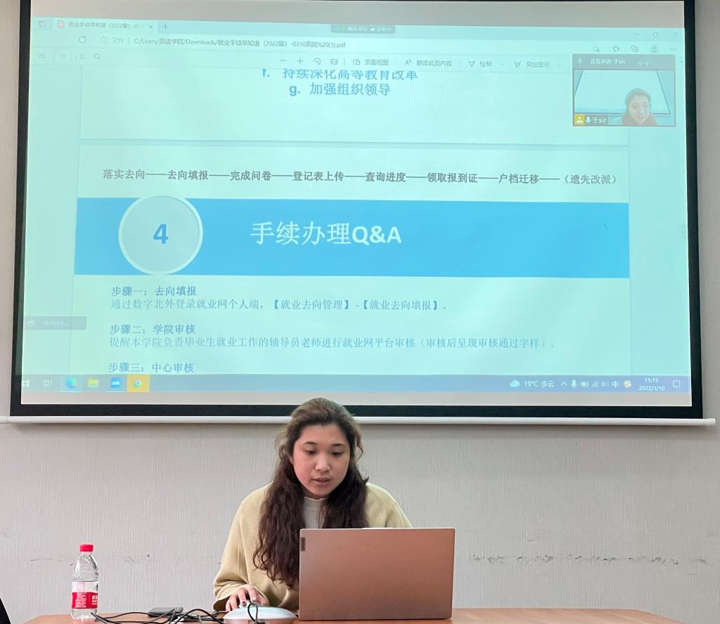为推进2022届毕业生就业工作的进一步落实,助力毕业生顺利就业,三亿体育于310日召开2022届毕业生毕业手续办理答疑会。会议采取了线上为主、线下同步的方式进行。公司就业创业中心高百卉老师主讲,辅导员于承杰主持,三亿体育2022届本科毕业生及研究生毕业生参加。