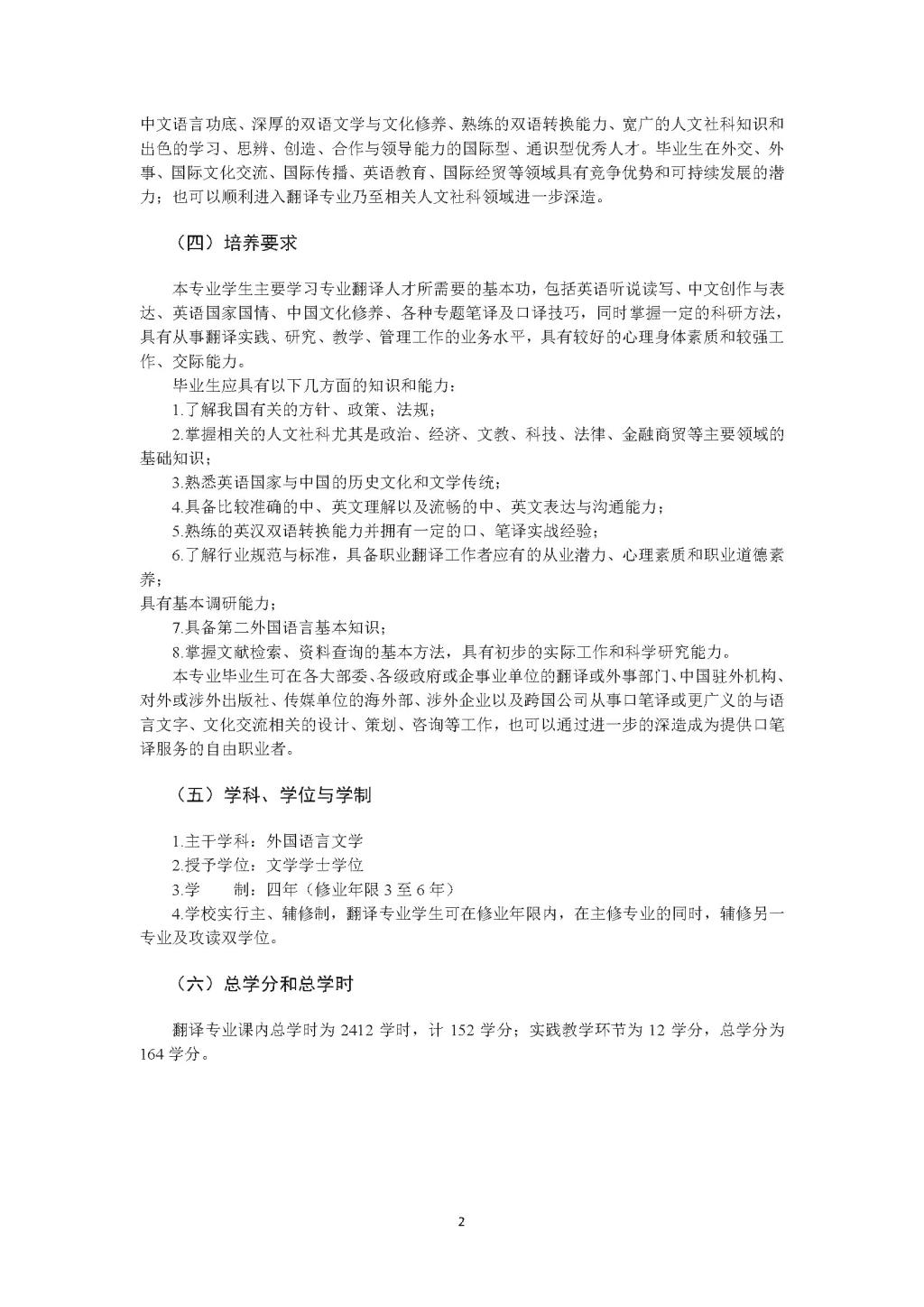 三亿体育翻译专业本科培养方案(2016)