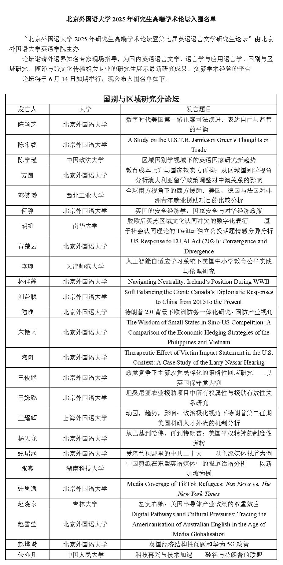 三亿体育官网2025年研究生高端学术论坛入围名单